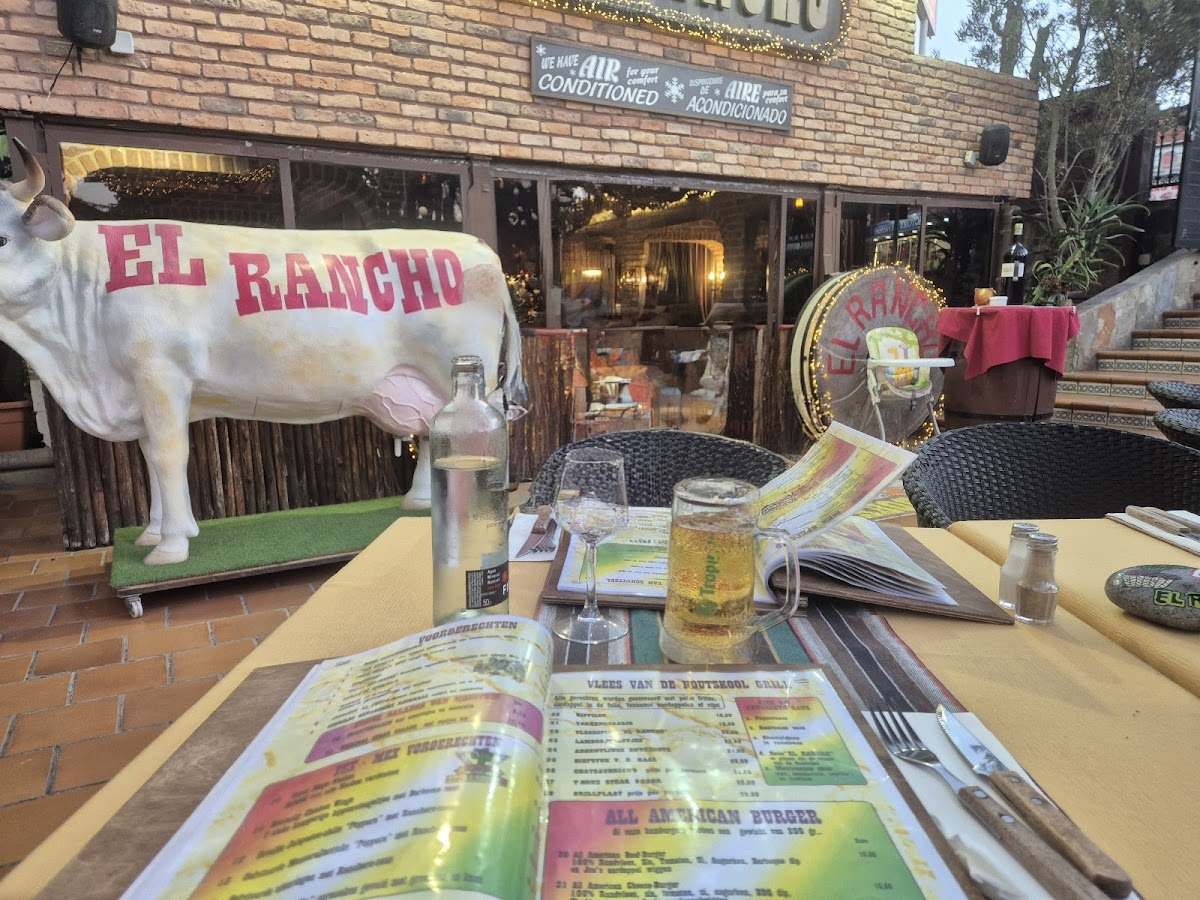 If we could give this place six stars, we would. El Rancho was easily the classiest and most romantic restaurant we visited in Gran Canaria — a true highlight of our honeymoon. The moment you walk down the steps into the dining area, you feel transported somewhere elegant yet warm. The décor, the lighting, even the carved wooden menu covers all whisper quality. It’s quiet, relaxed, and beautifully kept — spotless, comfortable, and effortlessly stylish. We dined here twice, both times after 9 p.m., when the evening rush had eased, and every visit felt like a private occasion. The service was flawless — our waiter had that perfect “Alfred from Batman” charm: professional, witty, and attentive without ever hovering. The food? Outstanding. We started with wings, followed by a rack of ribs that fell clean off the bone, served with perfectly crisp chips. Everything was seasoned and cooked to perfection. The desserts were just as memorable — rich, well-presented, and the ideal finish. Prices are a touch higher than average, but for the standard you get, it’s worth every cent. To top it all off, each meal ended with a complimentary shot of local honey rum — the perfect sweet ending to an already perfect evening. El Rancho truly embodies what a honeymoon dinner should feel like: romantic, classy, and unforgettable. Whether you’re a couple looking for a special night or a family wanting a polished dining experience, this restaurant stands a cut above the rest. We can’t recommend it highly enough.